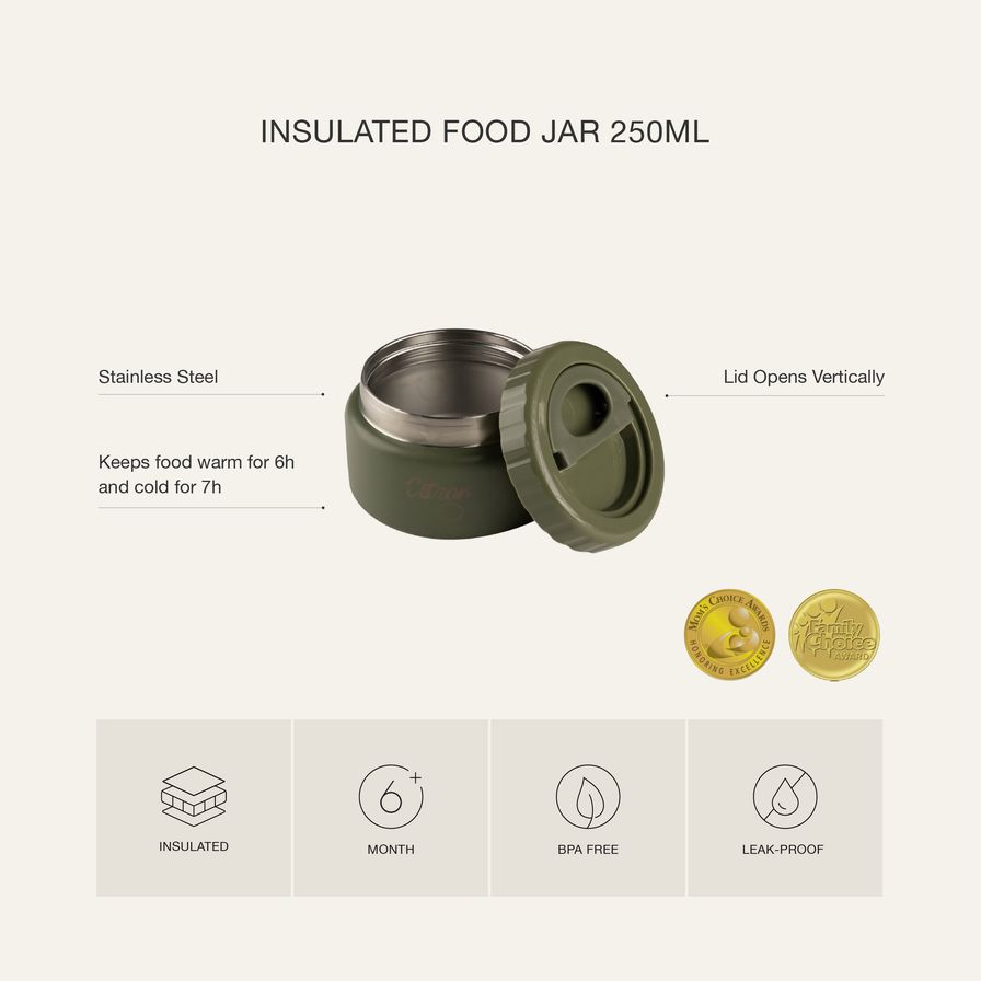 This compact 250ml insulated Food Jar is a great food storing solution for snacks, side dishes or small meals both at cold or warm temperatures. Thanks to its leak-proof lid, it vacuum-seals food inside making it a very reliable option to carry it anywhere and without spilling. It's the perfect thermos food jar for hot soups, cold salads and everything in between.