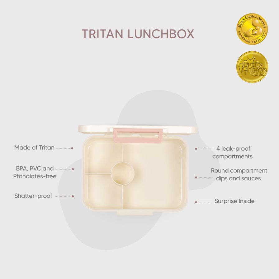 What if you could keep the same storage solution for your kids for many years? Well, now you can with our compartment lunch box made with Tritan, a shatter-proof material that makes it last a very long time. Designed with 4 compartments and easy to wash, the bento lunchbox lets you separate food into 4 different sections, including a round one.