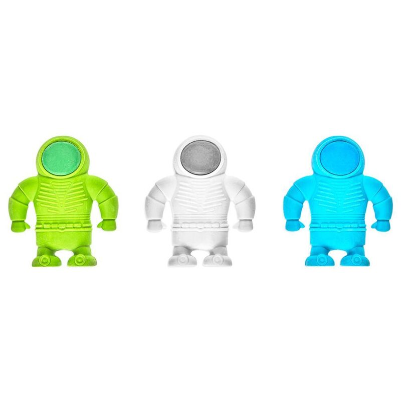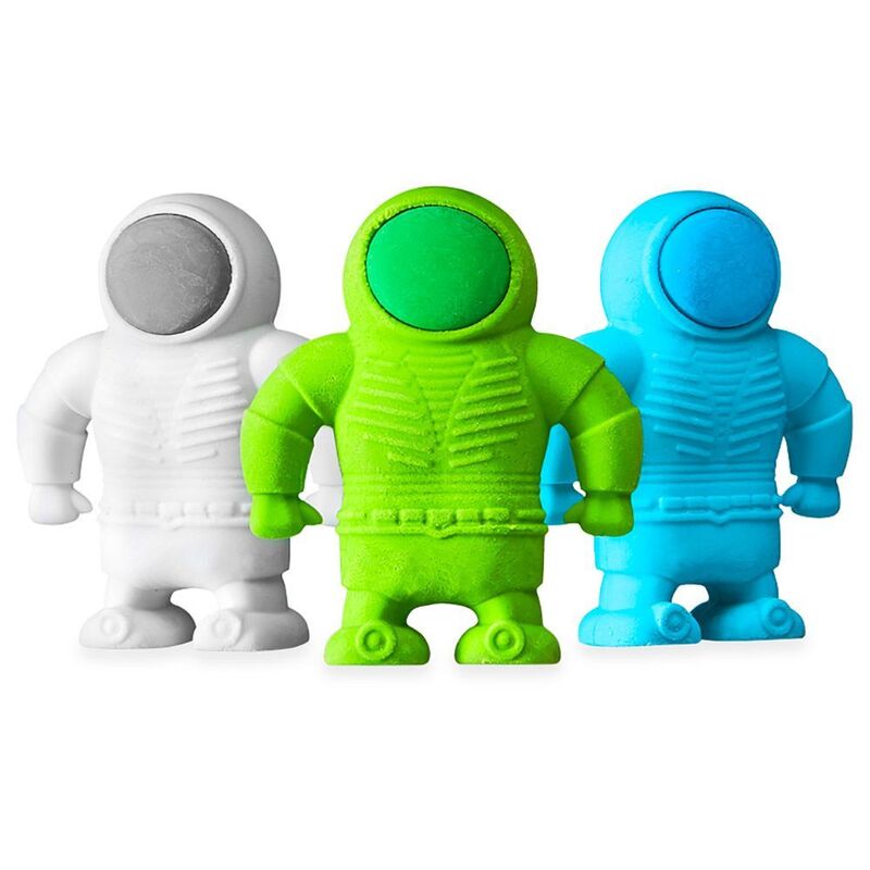 Countdown to blasting your mistakes off into outer space with these far out novelty erasers! These 3 outer space erasers are your adventurer buddies into the mind-opening space of creativity! This team of intergalactic astronaut pencil erasers are the perfect companions for budding space explorers and are perfect in space, at home or at school. One small mistake on paper, three great opportunities to erase wayward pencil marks for good! ,, This novelty eraser set comes with three astronaut shaped erasers in blue, green and white.