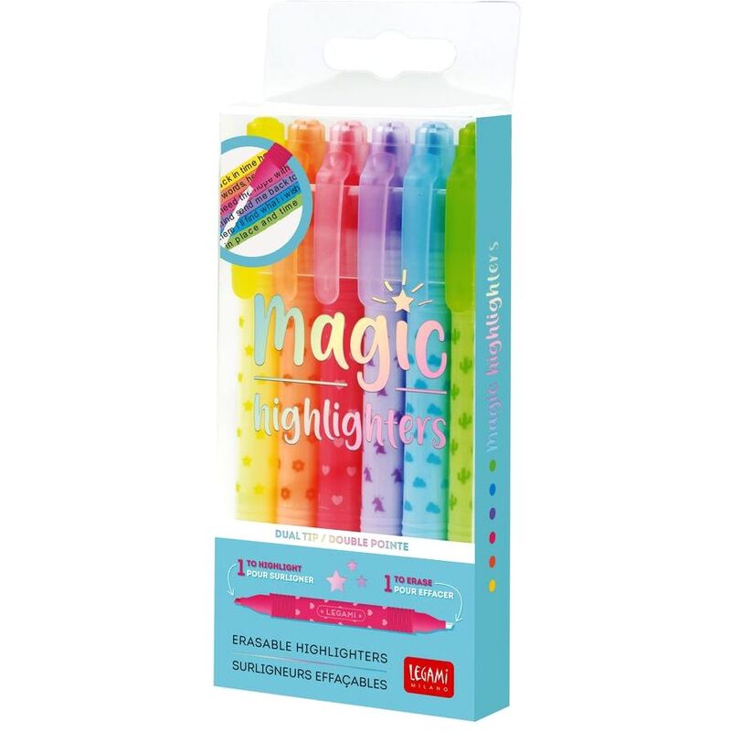 That is why you should always have the set of 6 erasable Magic Highlighters from Legami on hand. Each marker has two tips. You can use one tip to underline and highlight, and when you change your mind, just turn them over and use the second tip to erase.