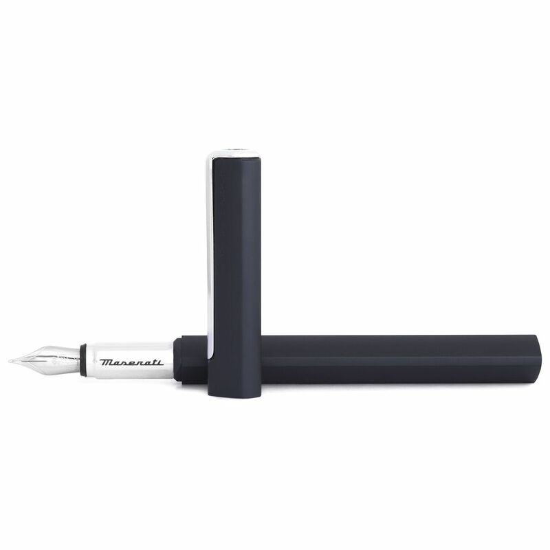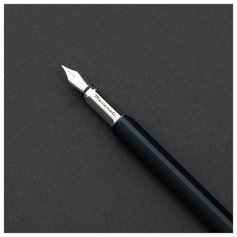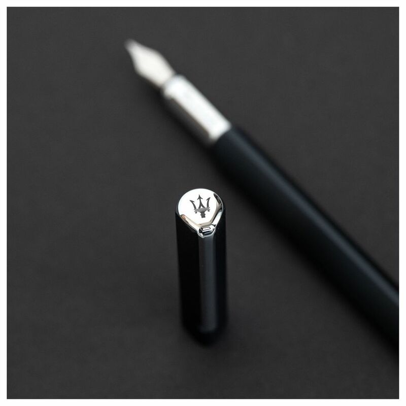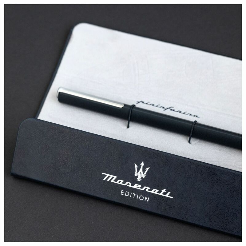 Pininfarina Segno takes a meaningful step into the realm of world-class international design, striking an alliance with the iconic luxury sportscar firm Maserati. A partnership whose force resides in the common vision and shared values: from the continuous research for excellence in every detail, to the perfect balance between artisan tradition and innovative techniques. The ambitious goal, is to create the most refined set of writing instruments, inspired by the four-wheel jewels of the iconic Trident. A new way of understanding luxury, enclosed in a prestigious object with a strong stylistic identity. Born from the fortunate conjunction of Pininfarina Segno and Maserati, PF One Fountain Maserati Edition is a writing instrument marked out by elegance and essential lines. The dynamic and all the while refined traits confer the product its unmistakable personality, further enhanced by the classic midnight blue livery and the Maserati trident.