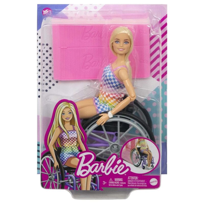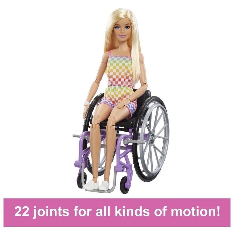 • Barbie® doll sparks play potential with a manual purple wheelchair and a pink ramp that help her get easily in and out of the Barbie® Dreamhouse™ (sold separately, subject to availability).