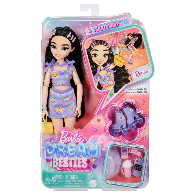 - The Barbie Dream Besties Renee loves to roller skate Watch her skate in her detailed outfit with fun-themed accessories!