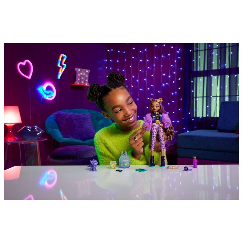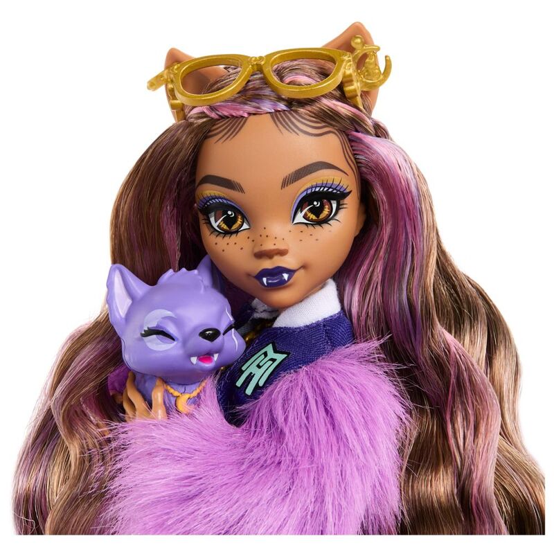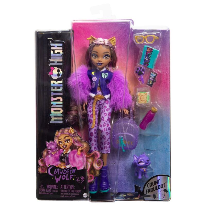 This Monster High doll makes quite an iclawnic werewolf! Clawdeen Wolf shows off her furrocious fashion sense in a head-to-toe purple lurk. Her creeptastic canine Crescent is ready to join in on the fun, too! With her poseable body and spooktacular storytelling accessories, Clawdeen Wolf doll is a perfect gift for kids 4 years old and up. Fully articulated. Doll cannot stand alone. Colors and decorations may vary.
