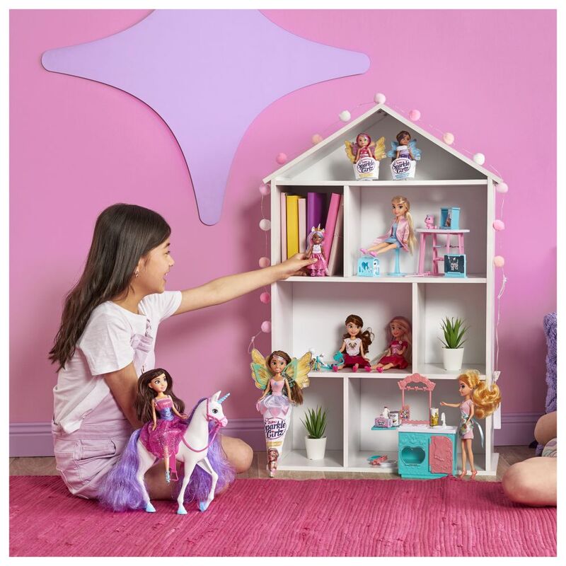 ZURU Sparkle Girlz Super Sparkly Fairy is an adorable toy for girls on the go! Fly her into a magical fairy kingdom and watch her wings sparkle. She loves to fly to new places and her long hair is amazing to brush and style! Flutter around the world of sparkle heart and leave a little sparkle wherever you go! Comes with colorful, sparkly outfit that can be interchangeable with other Sparkle Girlz dolls and other fitting doll clothes (sold separately). Collect all four super sparkly fairy dolls in a cone! Sparkle every day at an amazing value too!