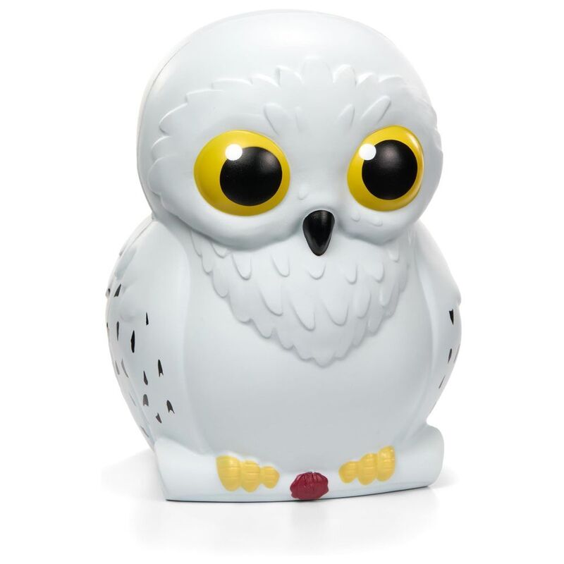 - The foam Hedwig is presented as a charming snowy owl, holding a scroll in her claws.