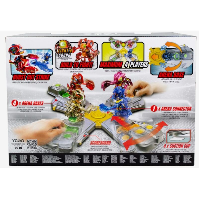 Toy set for assembling the combat arenaEasy to assemblePull or push to move the robot hand so it can make a punchHit the opponent's chest to break the headEach arena has a board to keep score in the battleHas passed the SNI test
