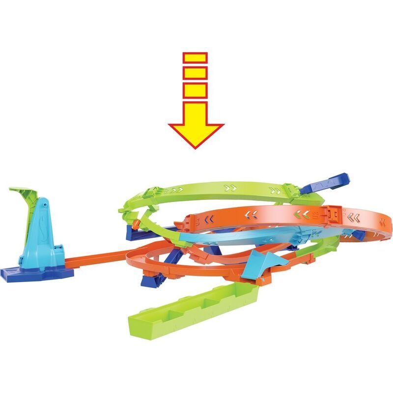Race and stunt on the Hot Wheels Action Loop Cyclone Challenge Track Set with 2 ways to play!