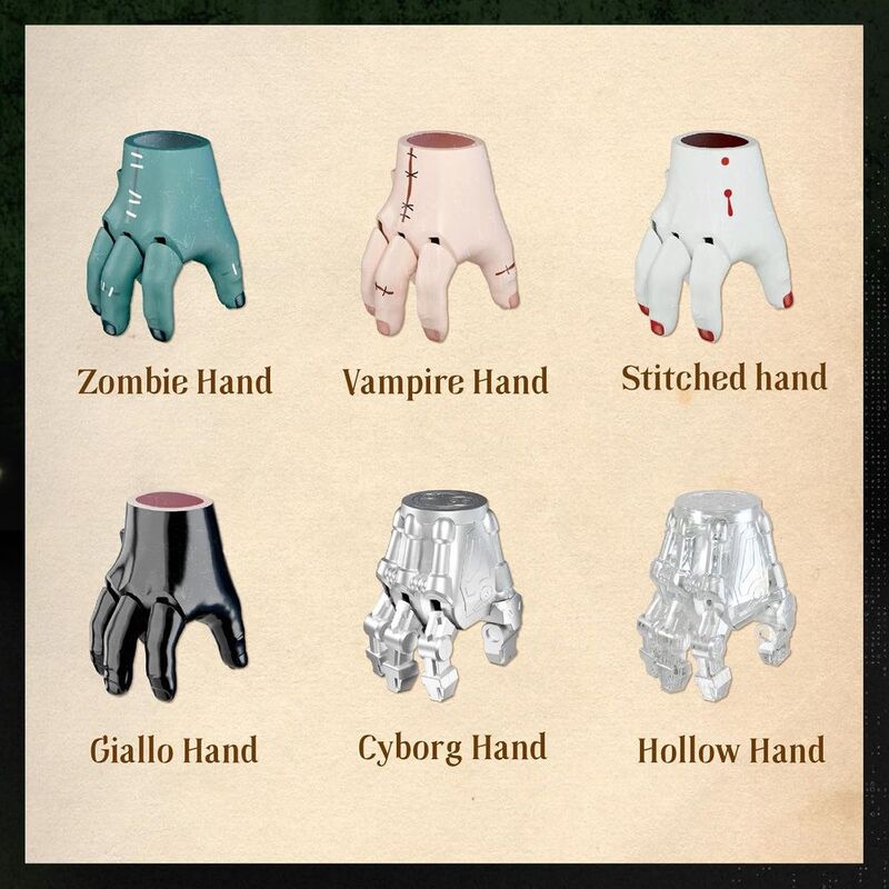 Quesera Series: Stranger Hands 8cm figurine with mechanism 6 mystery boxes per display, product presented in counter display This series has 6 regular designs. Character list: Zombie Hand, Vampire Hand, Stitched Hand, Giallo Hand, Cyborg Hand, Hollow Hand. The QueSera Series - Stranger Hands models bring to life a mystical and surreal world where strange hands play a central role in the design.