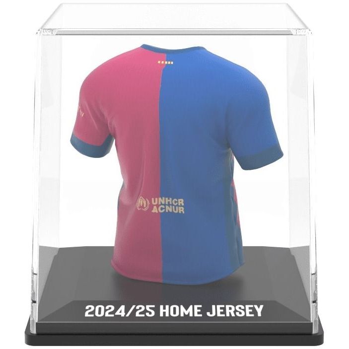 Elevate your football memorabilia collection with this premium display case featuring the FC Barcelona 2024/2025 season home jersey of Lamine Yamal. This officially licensed collectible showcases the iconic Blaugrana colours in a sleek, professional-grade display case with the prestigious FC Barcelona crest prominently featured. The jersey itself captures the club's traditional design, complete with the distinctive Spotify sponsor logo and team crest. The display case is expertly crafted to protect and showcase the jersey, featuring a clear viewing panel and a sophisticated navy blue frame. The base includes Yamal's signature and name plate, making this piece a perfect centrepiece for any football enthusiast's collection. Whether you're a dedicated Barca supporter or a collector of football memorabilia, this display case offers a stunning way to celebrate one of football's most exciting young talents. The case's professional presentation makes it an ideal gift for football fans and collectors alike.