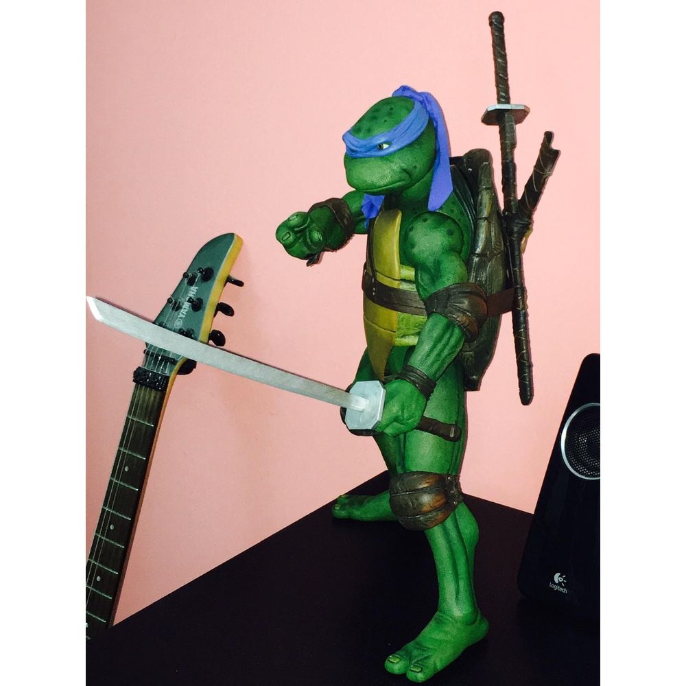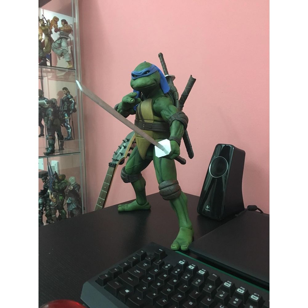 Radical and ready for action, Leonardo stands 16.5 inches tall and is the third 1/4 scale figure from NECA’s 1990 Teenage Mutant Ninja Turtles movie series. As the leader of the turtles, Leonardo features 30 points of articulation including double elbow joints for dynamic posing. The figure is movie-accurate with detailed sculpting and comes with katana swords, scabbards, an unbroken mutagen canister, a slice of pizza (no anchovies), and interchangeable hands.