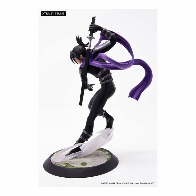 Saitama! Next time we meet, it’ll be your demise! I, Speed-O-Sound Sonic, the ultimate ninja, will bring you down without fail! Sonic to Saitama.This XTRA By Tsume figurine of Speed-O-Sound Sonic is an interpretation of his first encounter with Saitama, while both were in the woods, looking for Hammerhead. We see him brandishing his ninjato, ready to perform a Full Frontal Attack, dressed in his black ninja jumpsuit reinforced with a few pieces of armor.