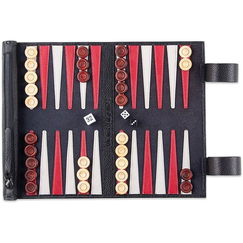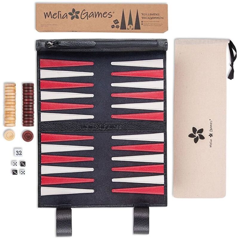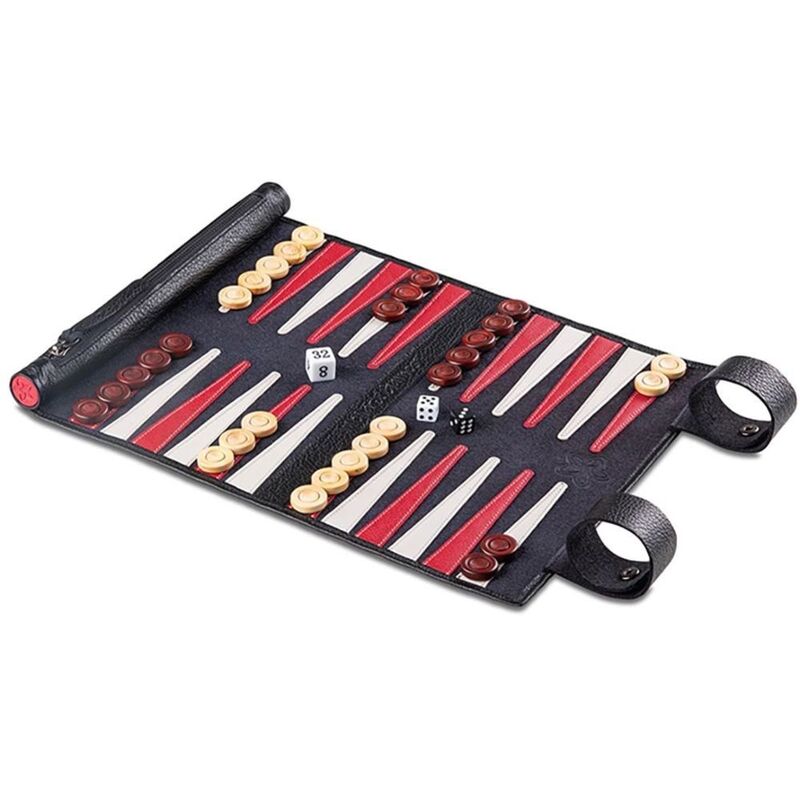 Melia Games Backgammon Travel Roll Up Leather Set - Black