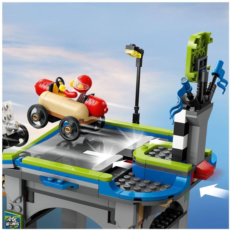 Elevate your child's playtime excitement with the LEGO® City No Limits: Race Car Ramp Track (60460) toy for ages 6 and over. This dynamic soapbox racing set features a towering toy car ramp and 2 unique soapbox race vehicles. Watch as kids place the quirky hot dog and toilet cars at the ramp’s peak and flick a lever to send them hurtling from the starting line. Complete with 4 minifigures, including hot-dog seller and plumber drivers, this set inspires imaginative play and storytelling.