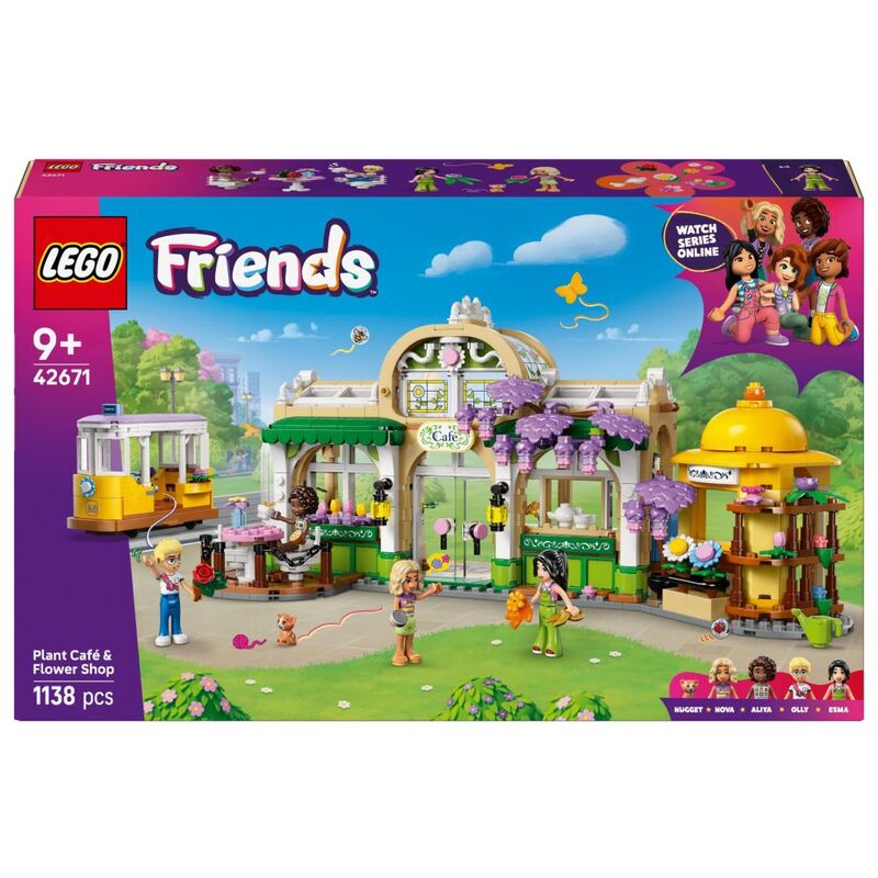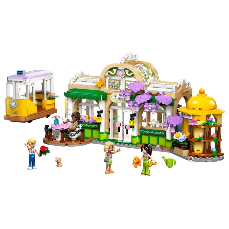 - • A building kit blooming with friendship – Let kids’ imaginations grow with the LEGO® Friends Plant Café & Flower Shop for girls and boys, with a flower-shop-and-café scene and a tram toy