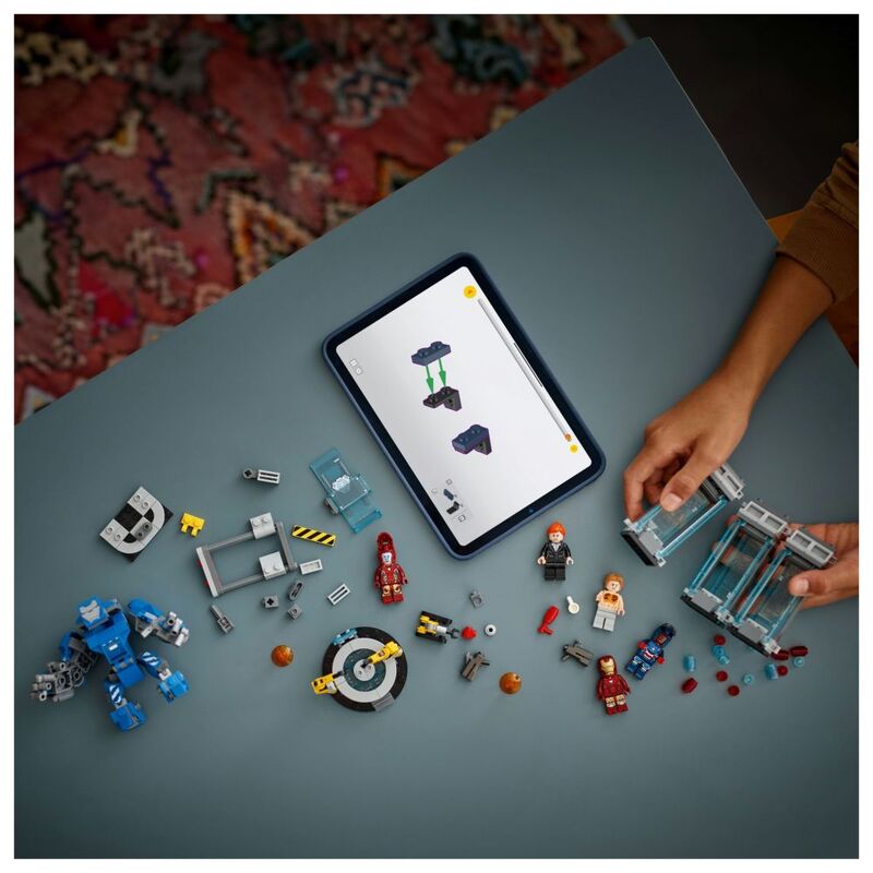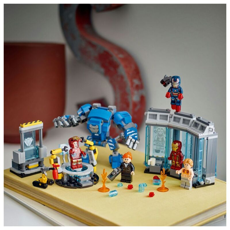 • • Iron Man’s lab with LEGO® ǀ Marvel figures – Iron Man’s Laboratory: Hall of Armour is a kids’ build-play-and-display Avengers set for boys and girls aged 8 and over