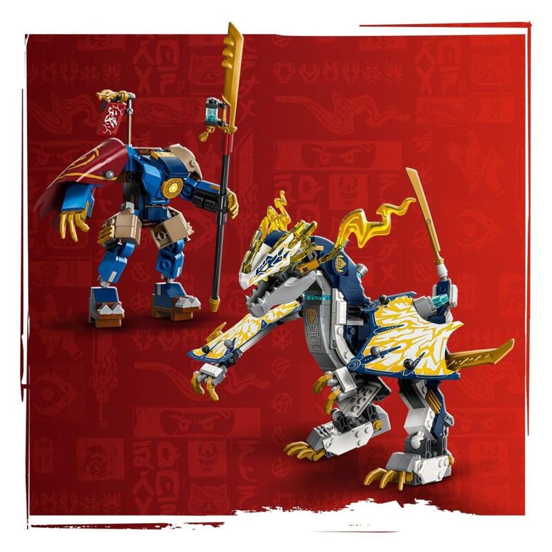- • Mech and dragon toy – Kids can play separately with the toys or attach the posable mech tthe back of the first-ever NINJAGO® mech robot dragon tcreate Rogue’s Mech Dragon Rider