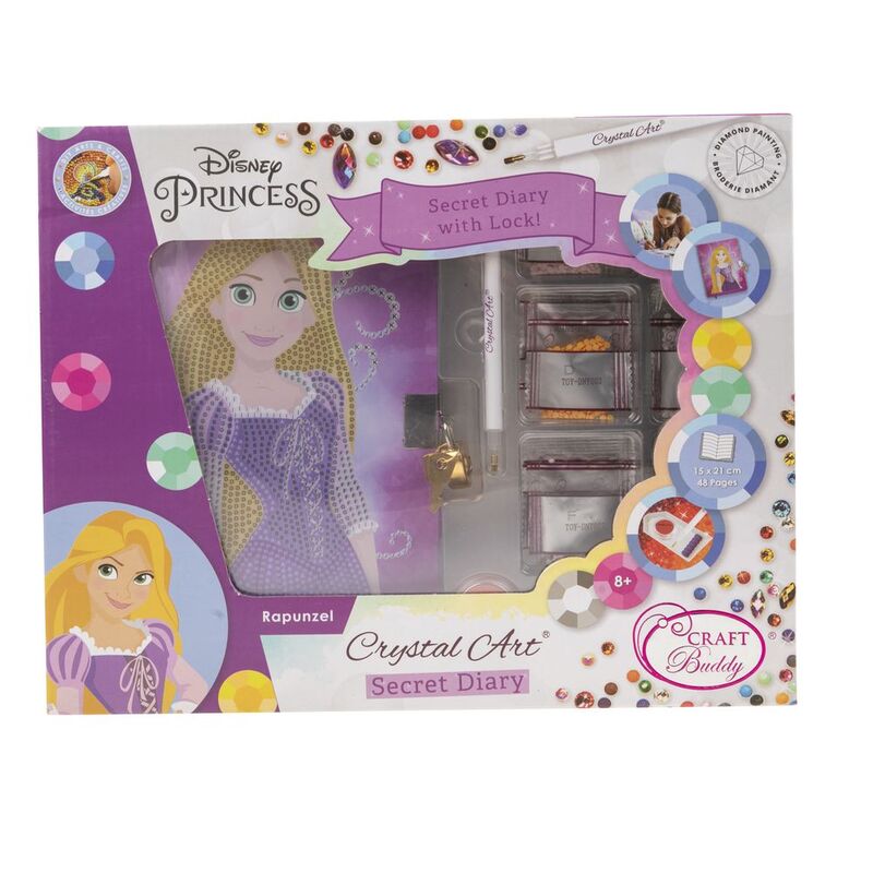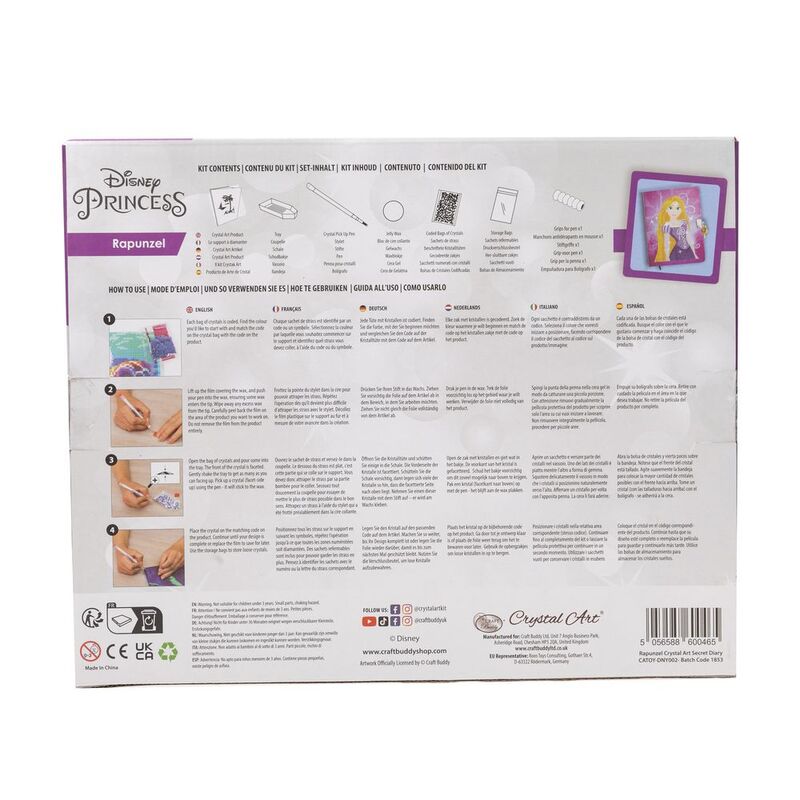 The magic of creativity with our enchanting Disney ""Rapunzel"" Crystal Art Secret Diary! Craft Buddy is thrilled to present this officially licensed Disney product, perfect for all the dreamers and story lovers out there.