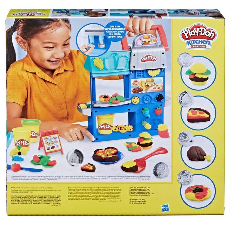 - 2-SIDED RESTAURANT KITCHEN PLAYSET: Aspiring chefs can feel like they're running their own restaurant with this play kitchen set for kids! Create, customize, and share amazing Play-Doh food creations