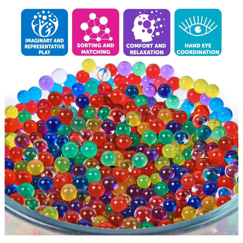 The Orbeez Multi Pack comes with 2,000 juicy grown Orbeez in five sensational colors: purple, red, yellow, green and blue! Squishy and smooth, kids and adults alike will love the soothing sensory experience of Orbeez! Non-toxic Orbeez are safety tested and won't fade, making them the perfect colorful addition to sensory bins for kids.