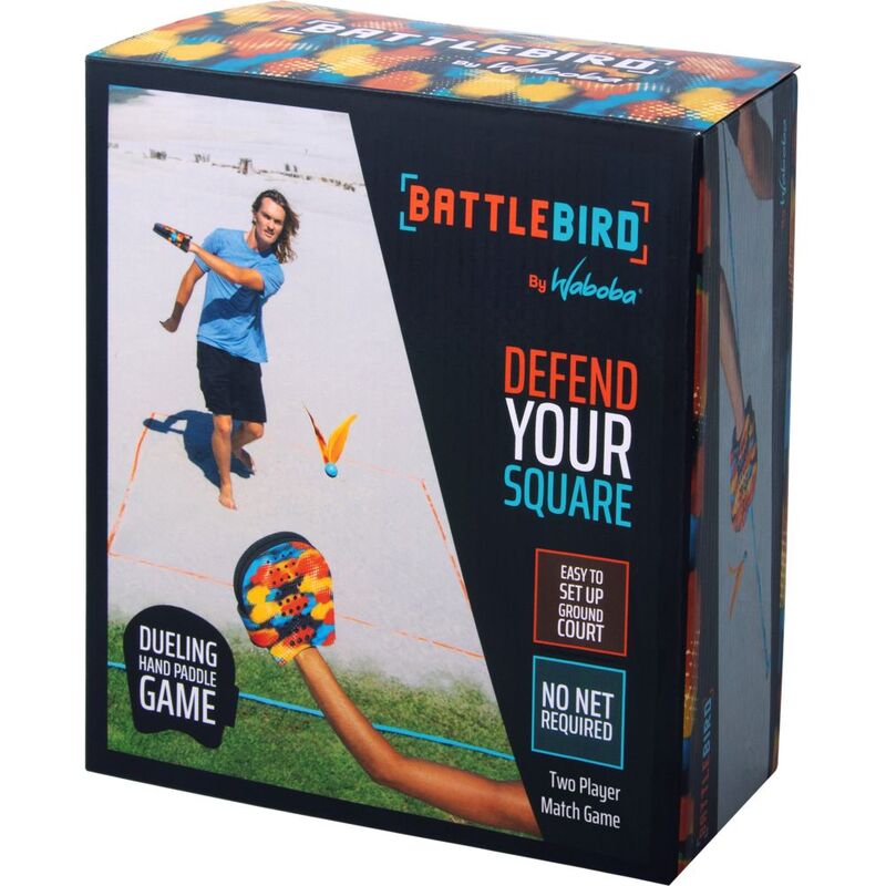 Defend your square! Battle bird is dueling two player match game featuring VOLI hand paddles, a new fast-spinning birdie, and ground court straps to set up two squares. Play in the backyard, park, or beach. Hit the birdie to land in your opponent’s square to score points.