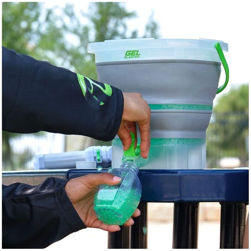 HOW TO USE: Drop in up to 10,000 Gellets, fill with 1-gallon of water, soak until ammo is fully hydrated, drain excess water and you are ready to load. Compatible with water beads for Gel Blaster, SplatRBall, Gel Ball Blasters, and all other Orbeez blasters.